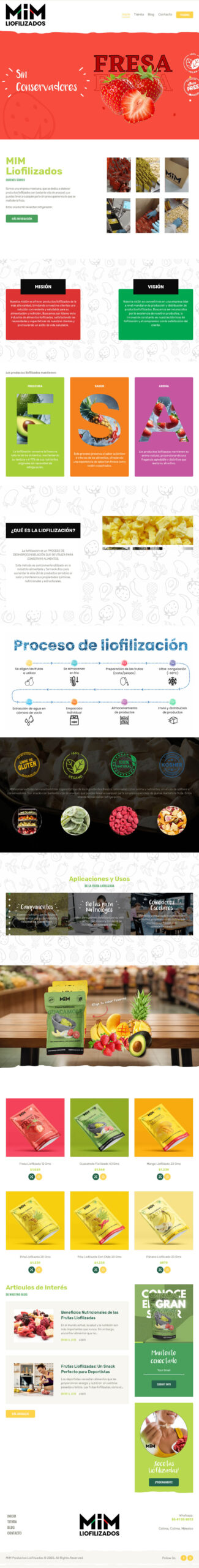Desarrollo de sitio web para productos liofilizados que se elaboran en Colima, México y se distribuyen a nivel nacional en supermercados, tiendas de conveniencia y se exportan a Estados Unidos, Europa y Asia.